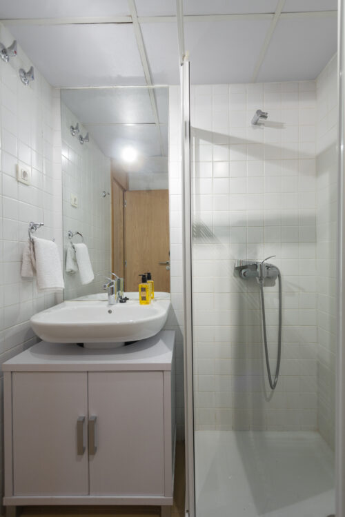 El cuarto de baño, con ducha se sitúa al final de la zona del salón comedor.