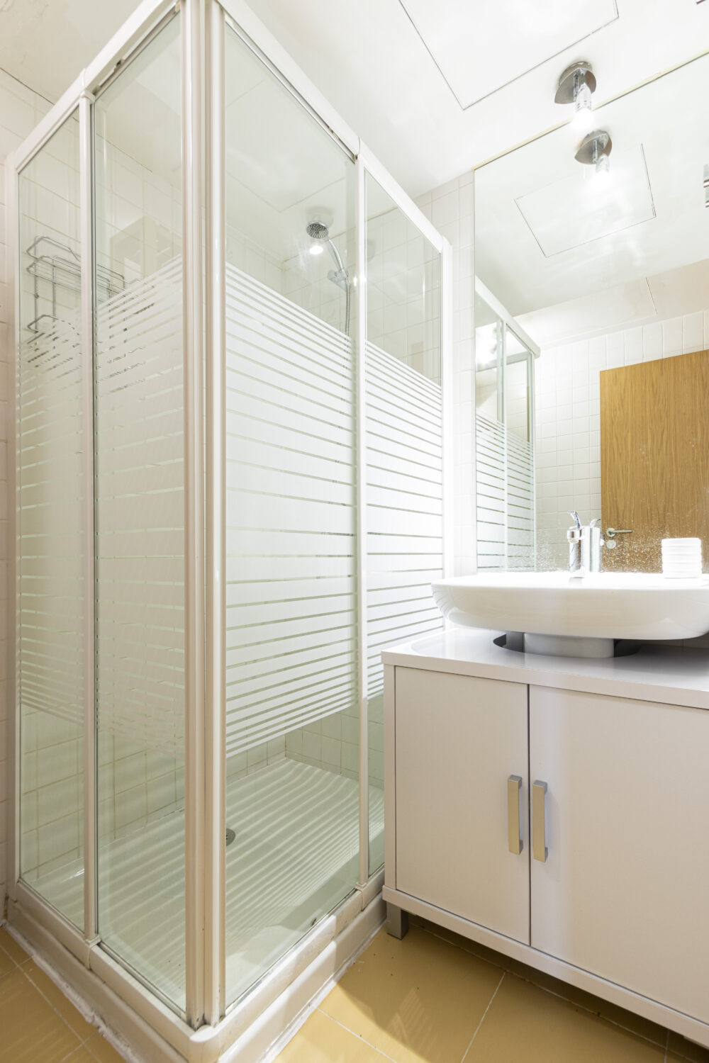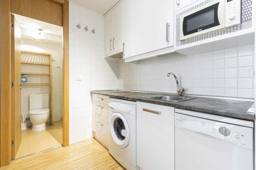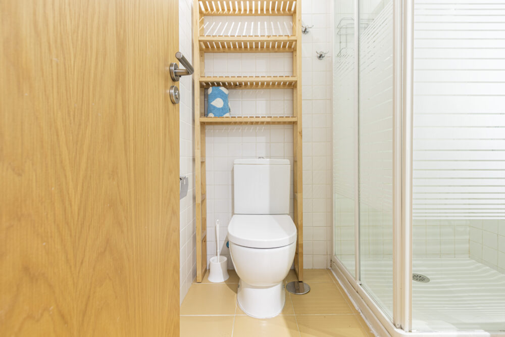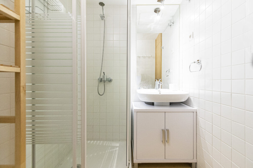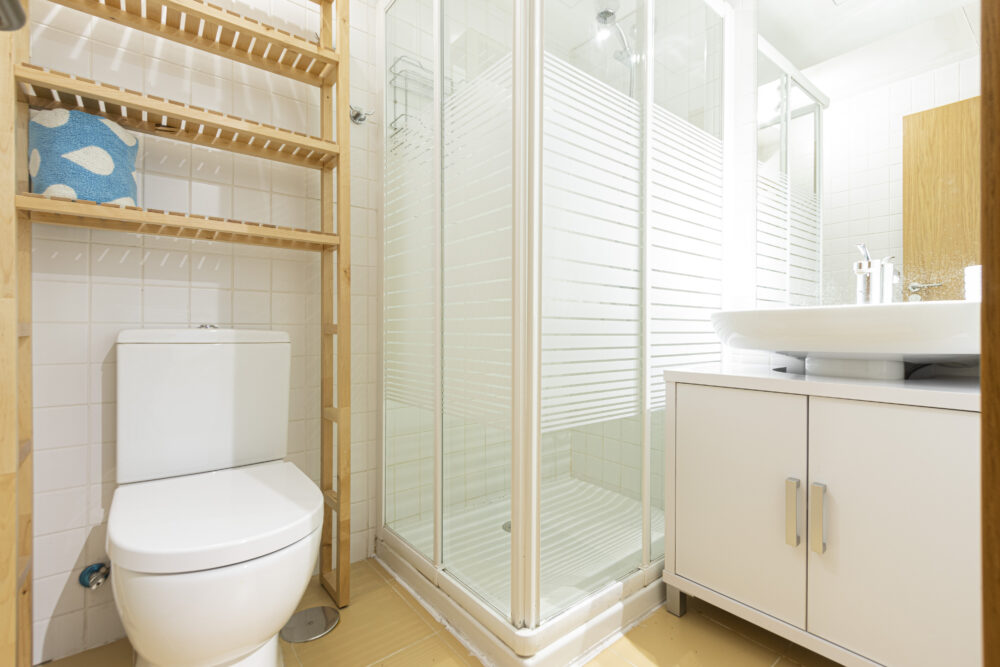 El cuarto de baño, con ducha, se sitúa al final de la zona del salón comedor y cocina.